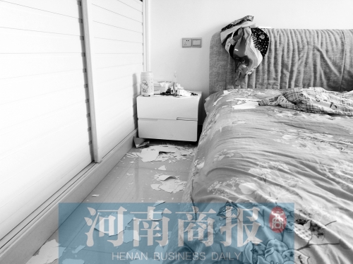 核实 枕头、被褥已被沤得变色天花板变成“大花脸”